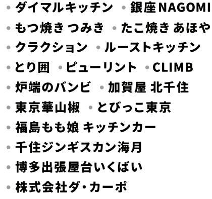 今年の食と音楽の祭典では、地元の人気店や話題の17ものフードブースや、キッチンカーが大集合!!!